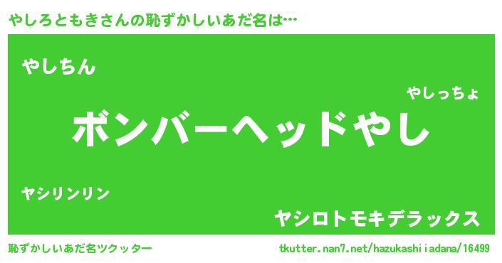 | 胡散臭い通販商品みたいなあだ名 | 『お金では代えられない隕石のかけら…その名も「やしろともき」』 |