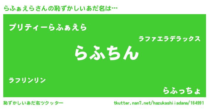 | ヒーロー風カッコイイあだ名 | 『仮面ラフダー』『ネオラファエラ』 |