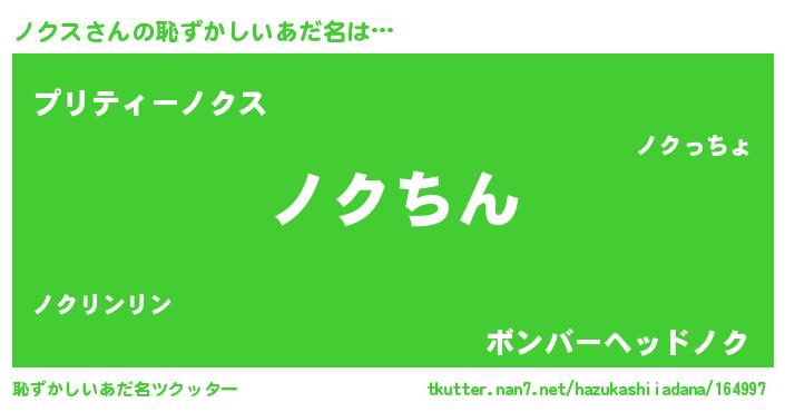 | ヘコむあだ名 | 『ノクス(笑)』『ノクにゅー』『牛乳』 |