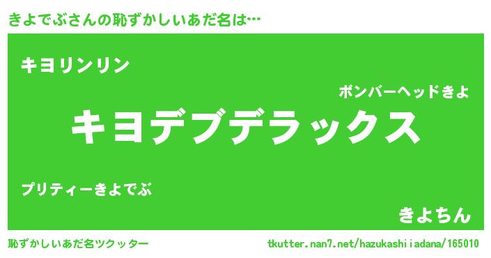 | 意味不明あだ名 | 『自称きよでぶ』『永久保存きよでぶ』 |