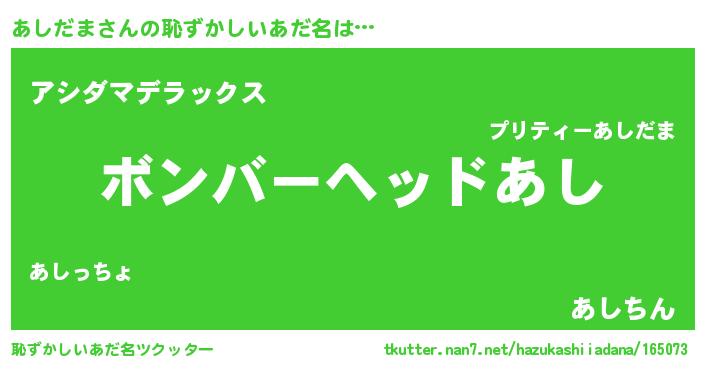 | 男性向けラノベタイトル風あだ名 | 『ノーゲーム・ノーアシダマ』 |