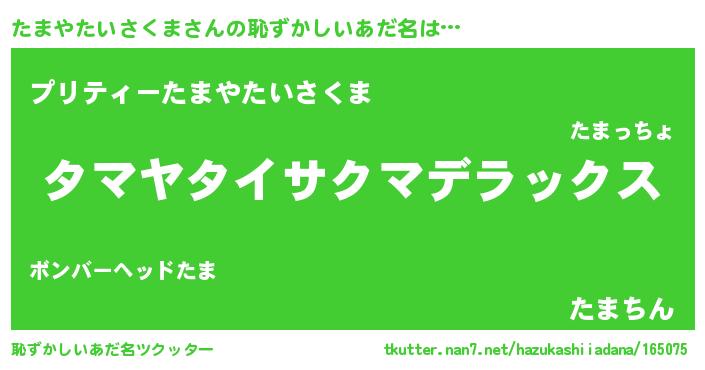 | 意味不明あだ名 | 『自称たまやたいさくま』 |