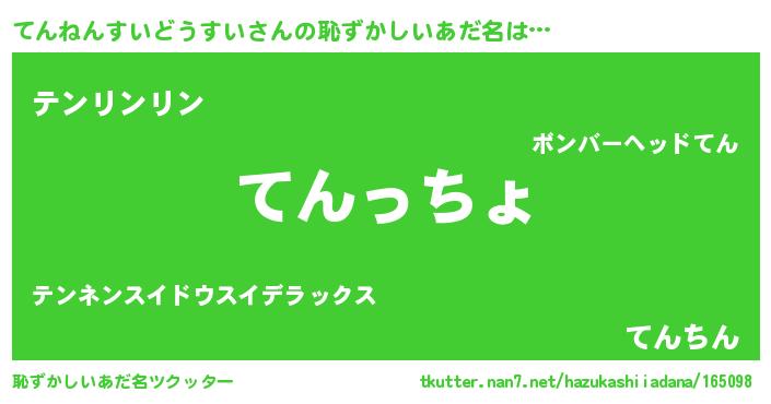 | 意味不明あだ名 | 『てんねんすいどうすいフォーエバー』 |