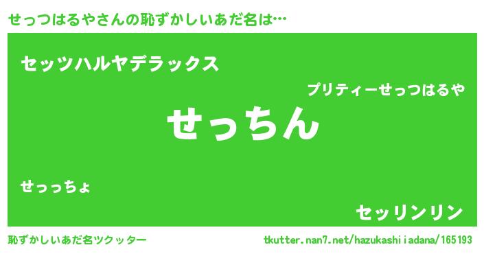 | ヘコむあだ名 | 『せっつはるや(苦笑)』『せっを』 |