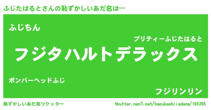 | ヘコむあだ名 | 『ふじたはると(苦笑)』『ふじぷりん』 |