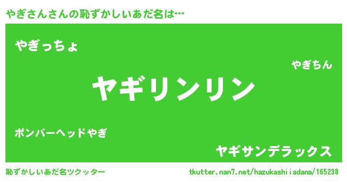 | ヒーロー風カッコイイあだ名 | 『天弓騎士ヤギ』『ウルトラやぎさんマン』 |