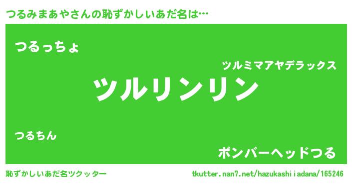 | 男性向けラノベタイトル風あだ名 | 『つるみまあやの嫁は女の子じゃないと思った?』 |