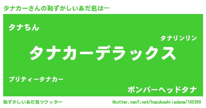 | 意味不明あだ名 | 『自称タナカー』『永久保存タナカー』 |