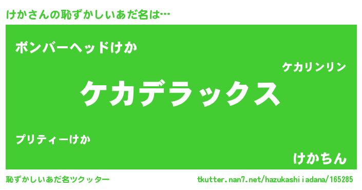 | ヘコむあだ名 | 『けか(笑)』『けかぷりん』 |