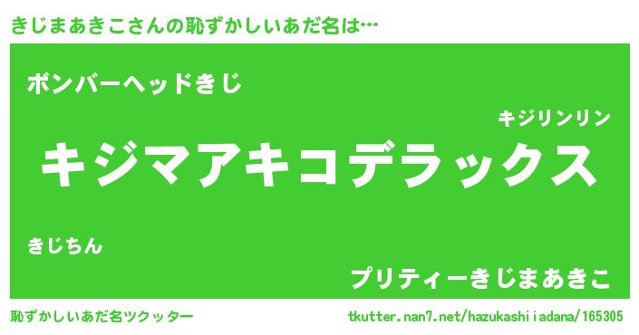 | 男性向けラノベタイトル風あだ名 | 『Re:きじまあきこから始める異世界生活』 |