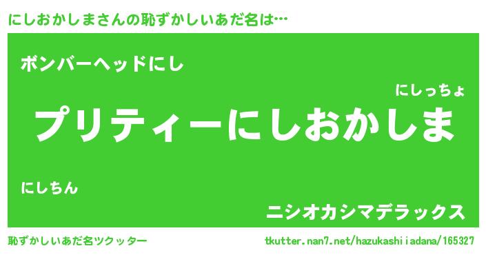 | ポケモン風あだ名 | 『ニシチュウ』『ニックウザ』 |
