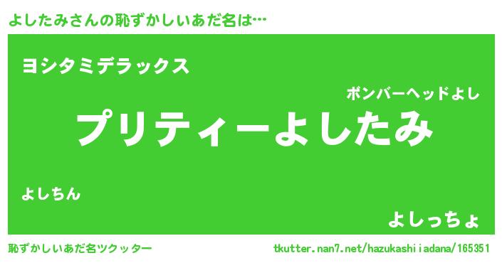 | 胡散臭い通販商品みたいなあだ名 | 『億万長者になれる水晶球…その名も「よしたみ」』 |