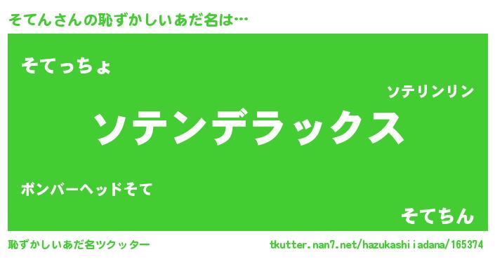 | ヒーロー風カッコイイあだ名 | 『最強戦士ソテン』『ウルトラそてんマン』 |