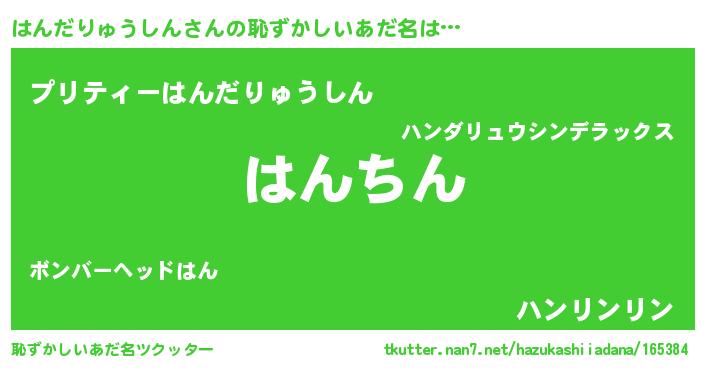| ヘコむあだ名 | 『はんだりゅうしん(爆)』『はんにー』 |
