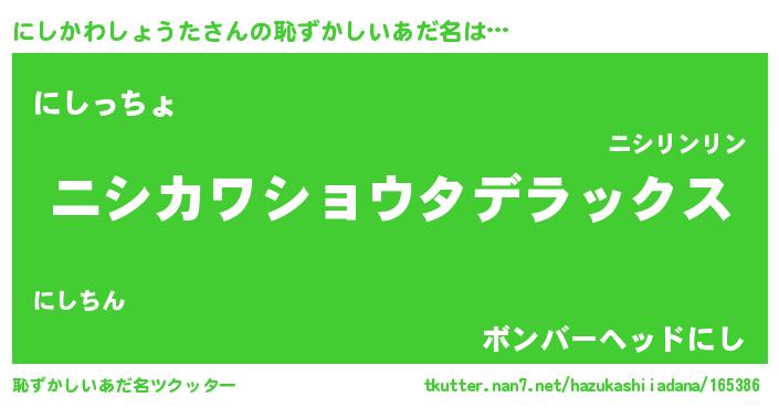 | 肩書あだ名 | 『にしかわしょうた閣下』 |