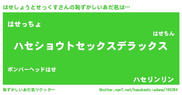 | 肩書あだ名 | 『はせしょうとせっくす閣下』 |