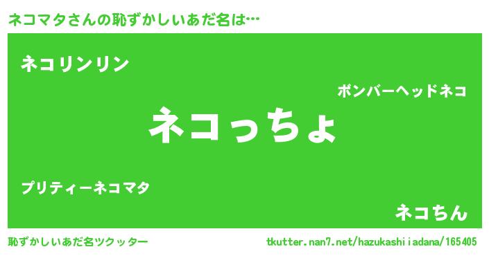 | 意味不明あだ名 | 『ネコマタフォーエバー』 |