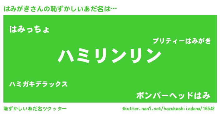 | ポケモン風あだ名 | 『ヒハミガキ』『ハミキング』 |