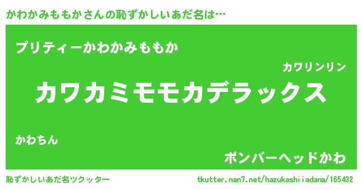 | 意味不明あだ名 | 『なめこ科かわかみももか属』 |