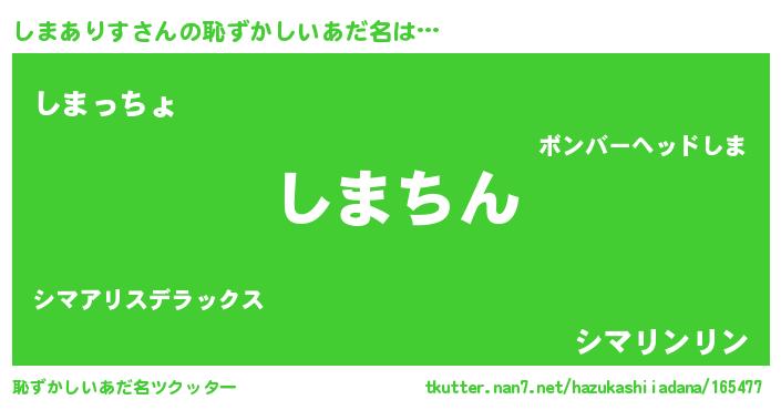 | ヘコむあだ名 | 『しまありす(爆)』『牛乳』 |