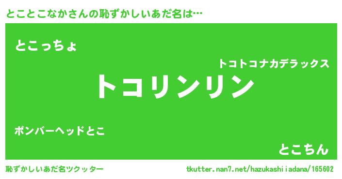 | ヘコむあだ名 | 『とこを』『つくし』『とこにー』 |