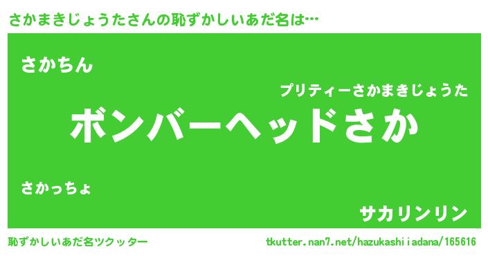 | 意味不明あだ名 | 『眠気覚ましガムさかまきじょうた味』 |