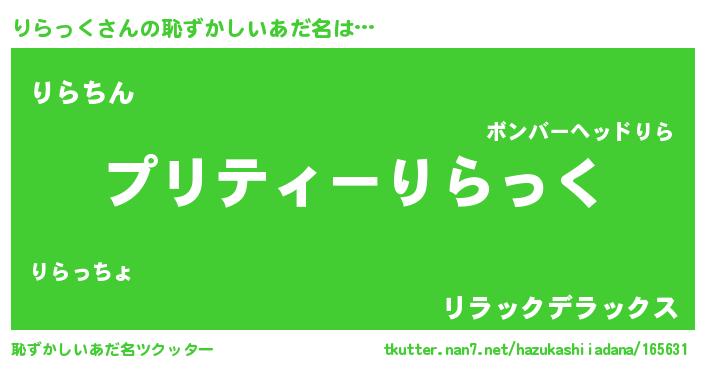 | ヘコむあだ名 | 『りらにー』『りらっく(笑)』 |