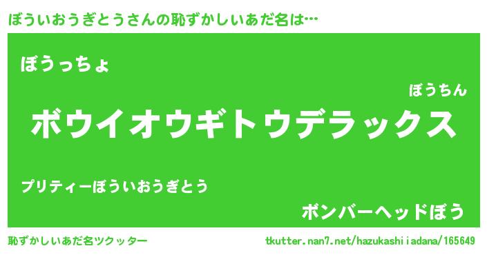 | 意味不明あだ名 | 『自称ぼういおうぎとう』 |