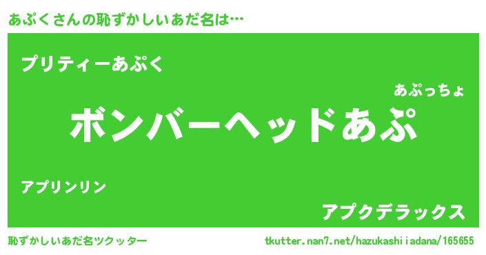 | ヒーロー風カッコイイあだ名 | 『天空の使者あぷく』『スーパーアプク』 |