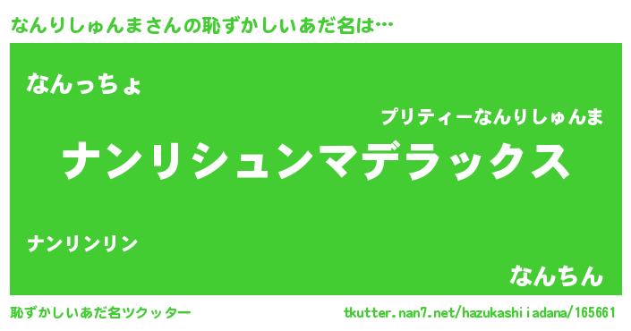 | 意味不明あだ名 | 『自称なんりしゅんま』 |