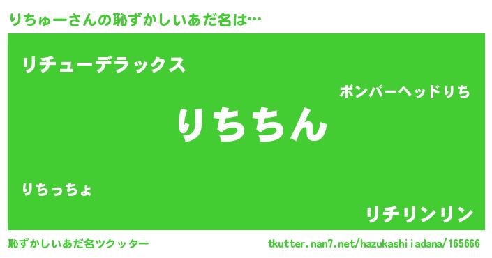 | 意味不明あだ名 | 『住所不定無職りちゅー(4歳)』 |