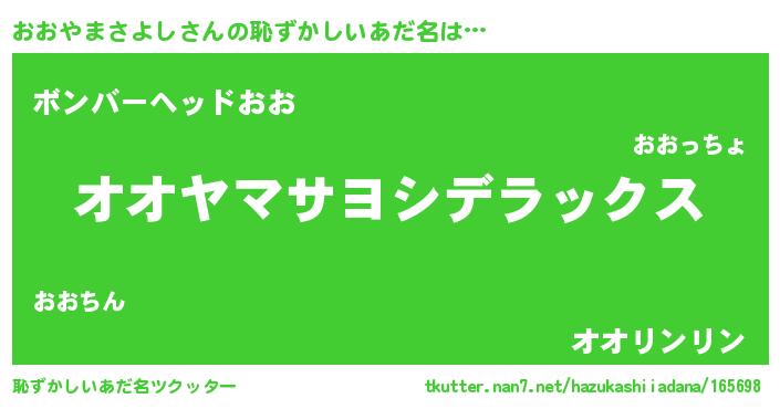 | 意味不明あだ名 | 『自称おおやまさよし』 |
