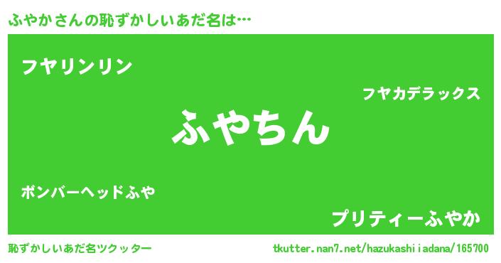 | ヘコむあだ名 | 『ふやか(小並感)』『ふやお』 |