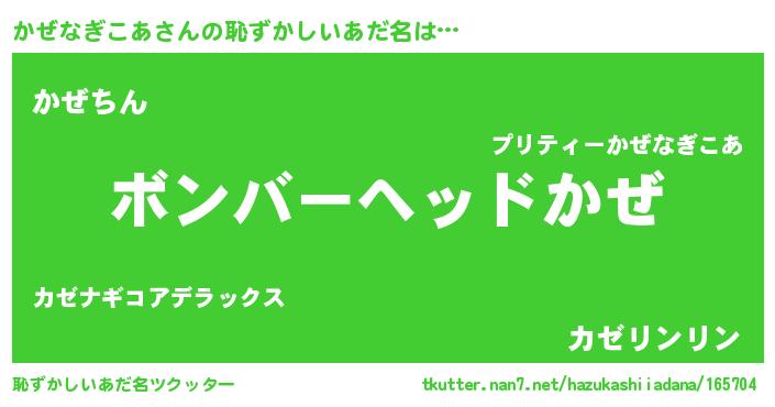 | ヘコむあだ名 | 『かぜなぎこあ(笑)』『かぜっぺ』 |