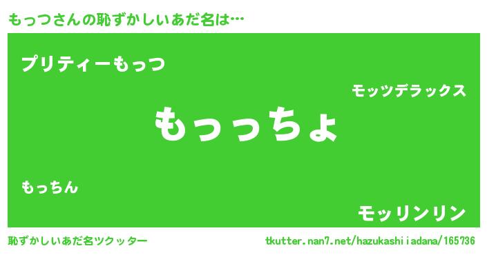| 意味不明あだ名 | 『もっつフォーエバー』『ペロリンもっつ』 |