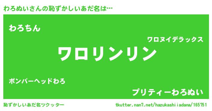 | 女子向けラノベタイトル風あだ名 | 『わろぬいは平凡を望む』 |