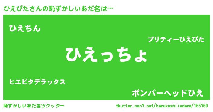 | 欧米人風あだ名 | 『ひえぴたクリステル』 |