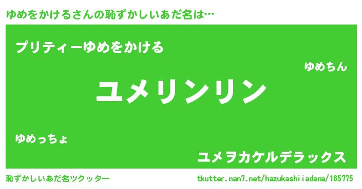 | ポケモン風あだ名 | 『メロユッメ』『ヒユメヲカケル』 |