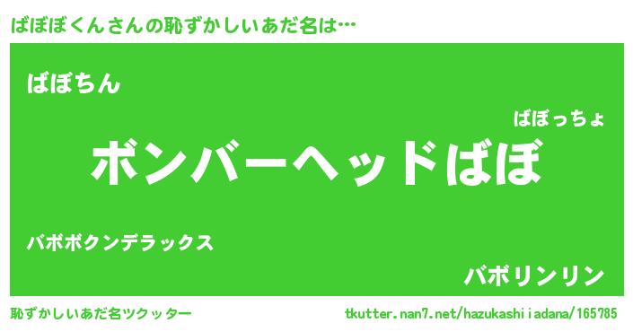 | ヘコむあだ名 | 『ばぼぼくん(苦笑)』『ばぼ太郎』 |