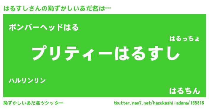 | ヘコむあだ名 | 『はるっふぃ~』『はるすし(笑)』 |