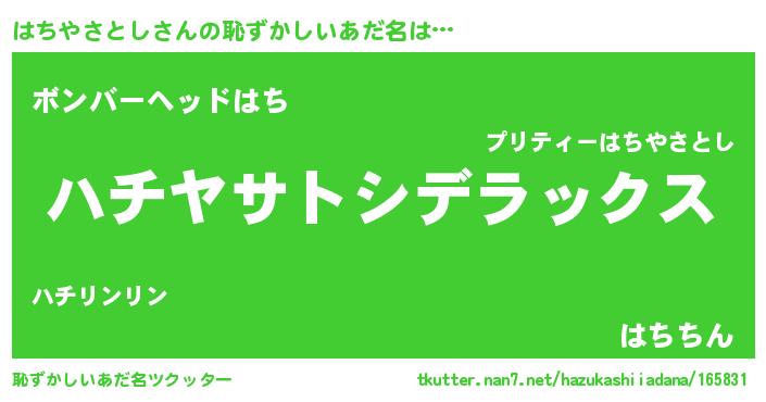| 胡散臭い通販商品みたいなあだ名 | 『あなたにだけ特別に提供する世界で10本だけ現存している希少なブランデー…その名も「はちやさとし」』 |