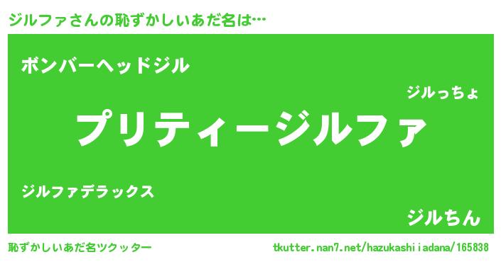 | ヘコむあだ名 | 『ジルもー』『ジルファ(遠い目)』 |
