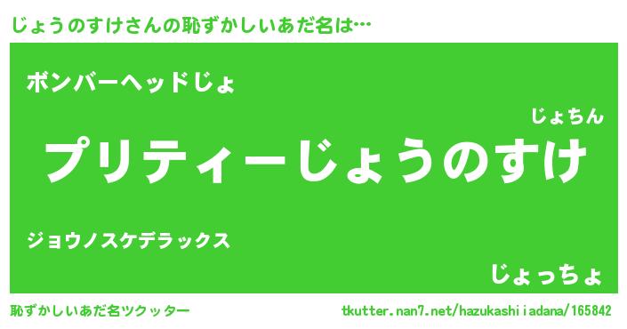 | 胡散臭い通販商品みたいなあだ名 | 『億万長者になれるブレスレット…その名も「じょうのすけ」』 |