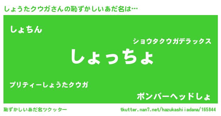 | ヘコむあだ名 | 『なまこ酢』『しょうたクウガ(笑)』 |