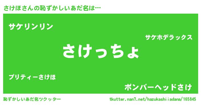 | 意味不明あだ名 | 『さけほフォーエバー』『自称さけほ』 |