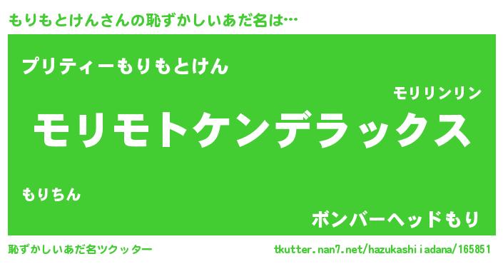 | ヒーロー風カッコイイあだ名 | 『最強戦士モリモトケン』『仮面モリダー』 |