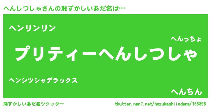 | ポケモン風あだ名 | 『ヘンチュウ』『ヒヘンシツシャ』 |