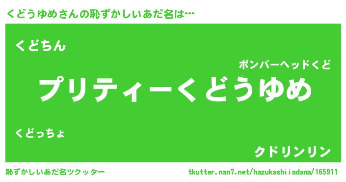 | ヒーロー風カッコイイあだ名 | 『仮面クドダー』『スーパークドウユメ』 |