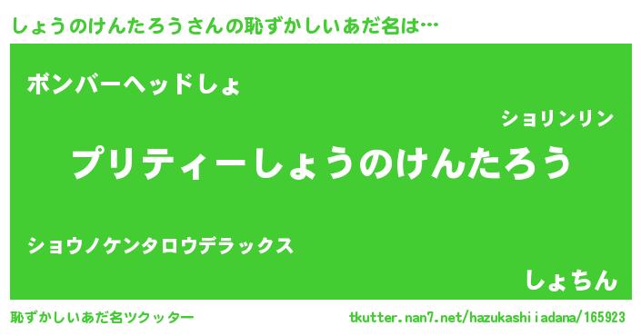 | 男性向けラノベタイトル風あだ名 | 『この素晴らしい世界にしょうのけんたろうを!』 |