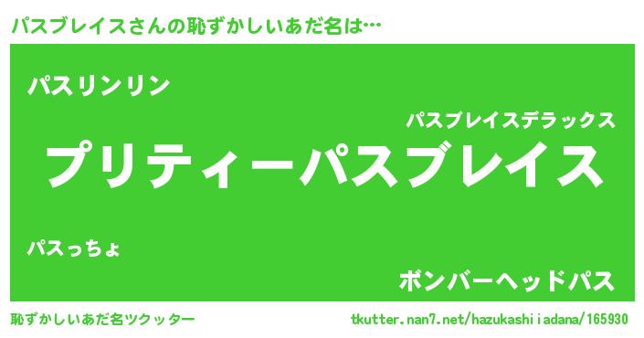 | ヒーロー風カッコイイあだ名 | 『スーパーパスブレイス』『魔戒騎士パス』 |